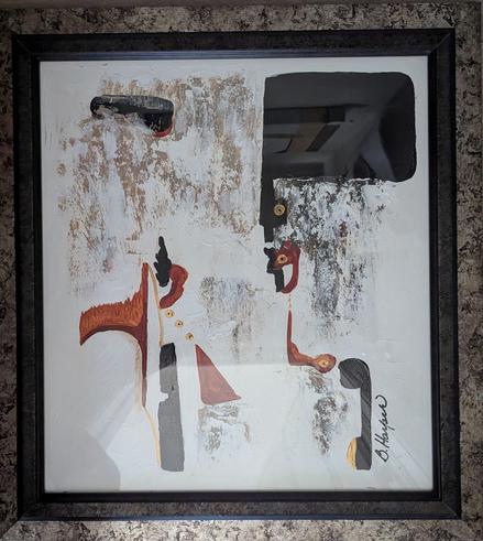 "Jazz Paradigms" is a 36" x 36" gallery wrapped canvas in a shadow frame. It represents my fascination with the work of Amedeo Modigliani's works in which he elongated facial and neck features to create a very unique artistic treatment of the human body.
